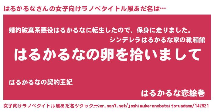 | 胡散臭い通販商品みたいなあだ名 | 『伝統あるペンダント…その名も「はるかるな」』 |