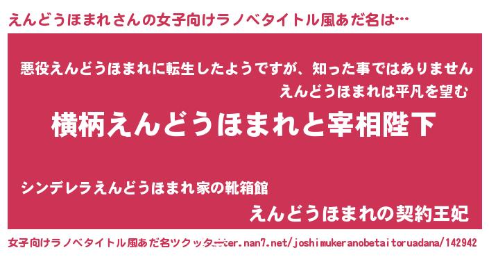 | 男性向けラノベタイトル風あだ名 | 『えんどうほまれに滅ぼされるだけの簡単なお仕事です』 |
