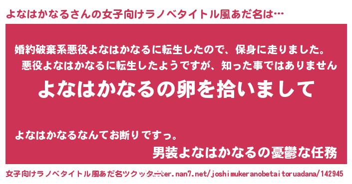 | 男性向けラノベタイトル風あだ名 | 『よなはかなるの嫁は女の子じゃないと思った?』 |
