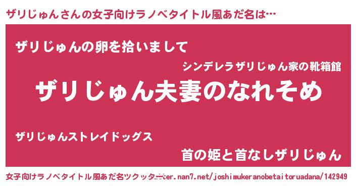 | 男性向けラノベタイトル風あだ名 | 『おまえをオタクにしてやるから、俺をザリじゅんにしてくれ! 』 |