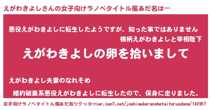 | 男性向けラノベタイトル風あだ名 | 『ダンジョンにえがわきよしを求めるのは間違っているだろうか』 |