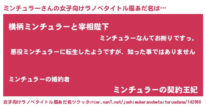| 男性向けラノベタイトル風あだ名 | 『この素晴らしい世界にミンチュラーを!』 |