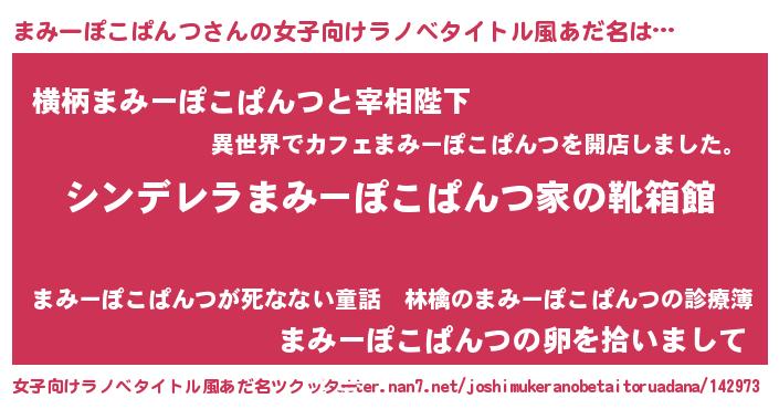 | 男性向けラノベタイトル風あだ名 | 『緋弾のマミーポコパンツ』 |