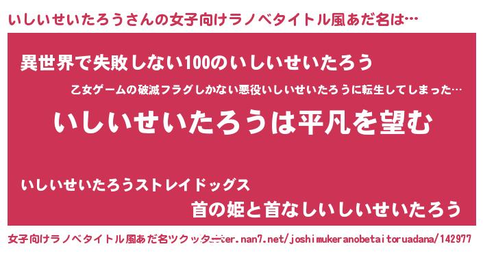 | 胡散臭い通販商品みたいなあだ名 | 『信頼と実績のサプリメント…その名も「いしいせいたろう」』 |