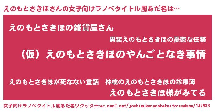 | 男性向けラノベタイトル風あだ名 | 『えのもとさきほの憂鬱』 |