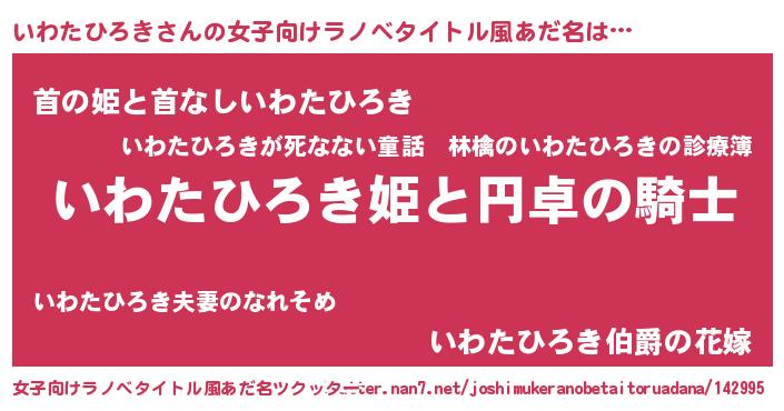 | 男性向けラノベタイトル風あだ名 | 『いわたひろきの憂鬱』 |