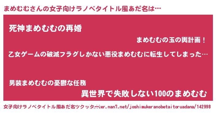 | ヒーロー風カッコイイあだ名 | 『仮面マメダー』『天空の使者まめむむ』 |