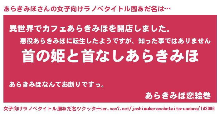 | 意味不明あだ名 | 『永久保存あらきみほ』『自称あらきみほ』 |