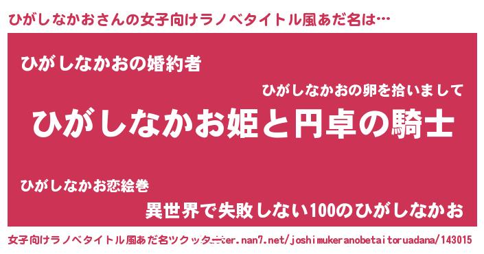 | 胡散臭い通販商品みたいなあだ名 | 『モテモテ間違いなし水晶球…その名も「ひがしなかお」』 |