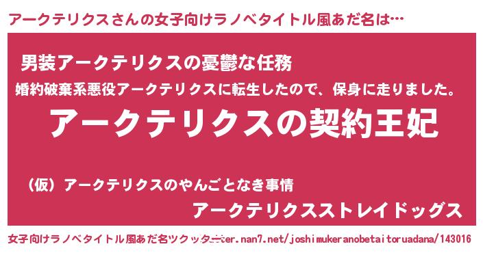 | ヘコむあだ名 | 『アークテリクス(遠い目)』『アーにゅー』 |