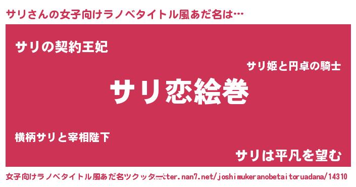 | 男性向けラノベタイトル風あだ名 | 『おまえをオタクにしてやるから、俺をサリにしてくれ! 』 |
