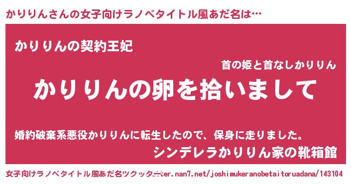 | 男性向けラノベタイトル風あだ名 | 『かりりんの嫁は女の子じゃないと思った?』 |