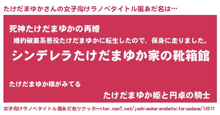 | 胡散臭い通販商品みたいなあだ名 | 『100人中100人が認めたイリジウム磁石…その名も「たけだまゆか」』 |