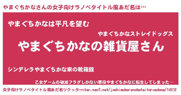 | 男性向けラノベタイトル風あだ名 | 『やはりやまぐちかなの青春ラブコメはまちがっている 』 |
