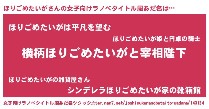 | 男性向けラノベタイトル風あだ名 | 『ほりごめたいがに滅ぼされるだけの簡単なお仕事です』 |