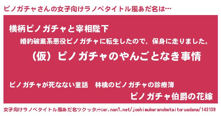 | ファンタジー風あだ名 | 『ピノフェル』『エターナルピノガチャー』 |