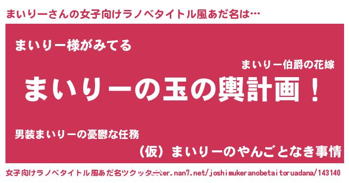 | ファンタジー風あだ名 | 『ユリマイヴァット』『ファントムマイス』 |
