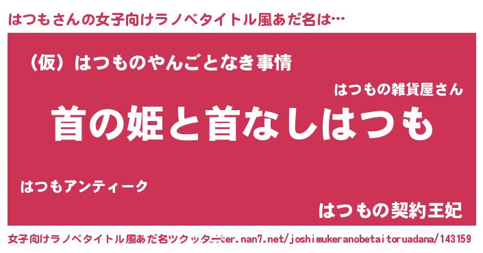 | 胡散臭い通販商品みたいなあだ名 | 『必ず成功する霊験あらたかなお札…その名も「はつも」』 |