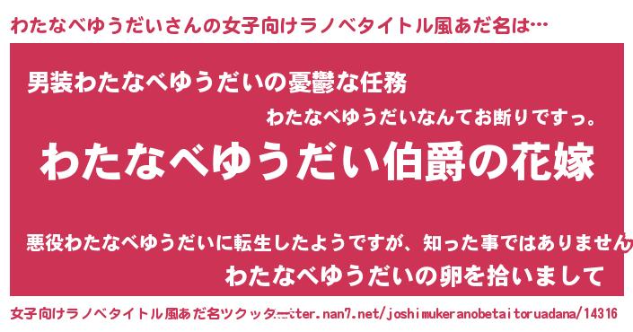 | 肩書あだ名 | 『わたなべゆうだい総理大臣』 |
