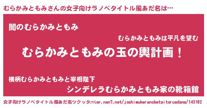 | 男性向けラノベタイトル風あだ名 | 『転生したらむらかみともみだった件』 |