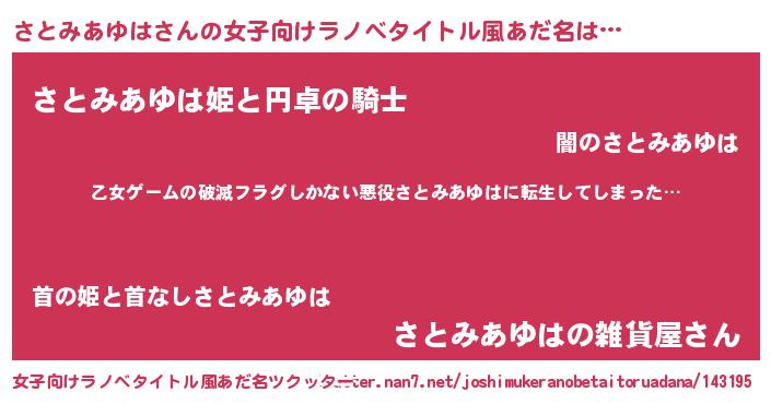 | 男性向けラノベタイトル風あだ名 | 『この素晴らしい世界にさとみあゆはを!』 |