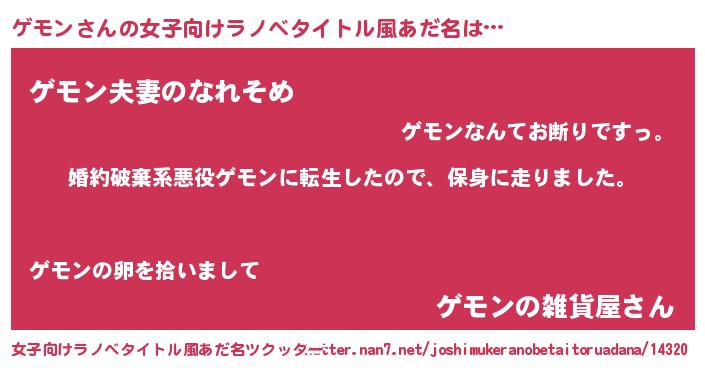 | 意味不明あだ名 | 『なめこ科ゲモン属』『自称ゲモン』 |