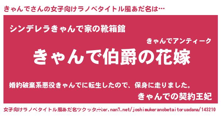 | 胡散臭い通販商品みたいなあだ名 | 『世界が平和になる高級そうな絵画…その名も「きゃんで」』 |