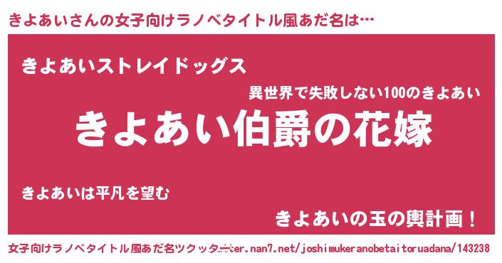 | 意味不明あだ名 | 『きよあいフォーエバー』『自称きよあい』 |