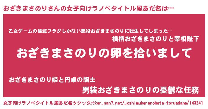 | ヒーロー風カッコイイあだ名 | 『幻影騎士オザ』『仮面オザダー』 |
