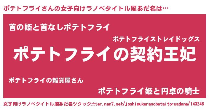 | 胡散臭い通販商品みたいなあだ名 | 『来世でも幸せになれる水素水…その名も「ポテトフライ」』 |