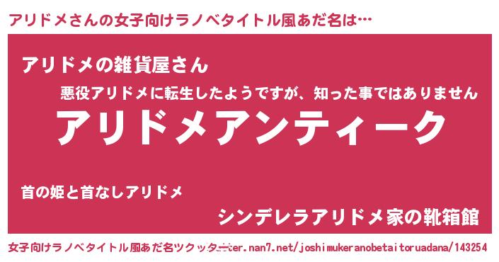 | 男性向けラノベタイトル風あだ名 | 『魔法科高校のアリドメ』 |