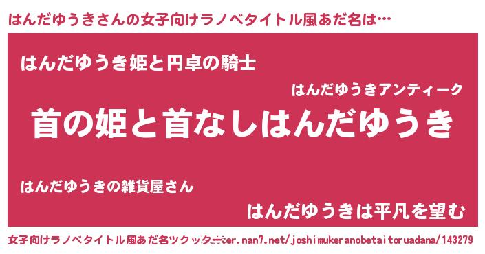 | 男性向けラノベタイトル風あだ名 | 『はたらくはんだゆうきさま!』 |