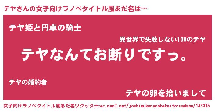 男性向けラノベタイトル風あだ名 | 『魔法科高校のテヤ』『テヤの憂鬱』 |