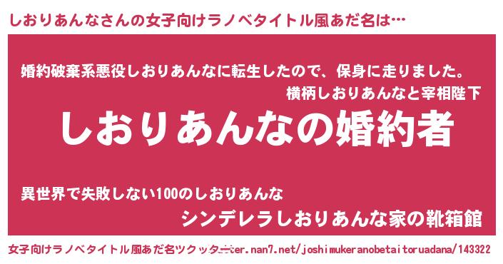 | 胡散臭い通販商品みたいなあだ名 | 『運命の人と巡り会える高級そうな絵画…その名も「しおりあんな」』 |