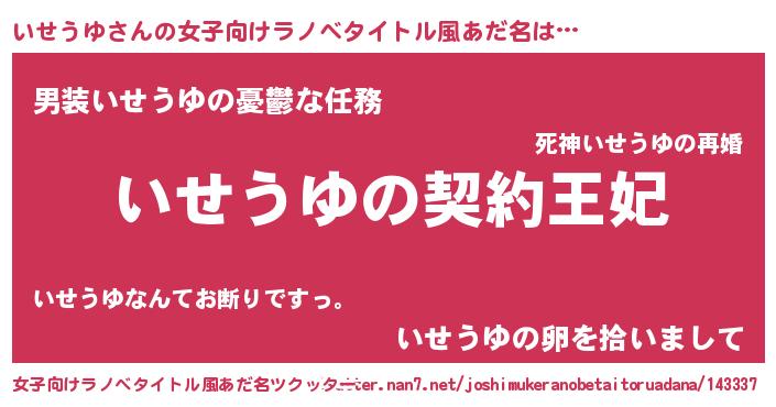 | 意味不明あだ名 | 『永久保存いせうゆ』『自称いせうゆ』 |