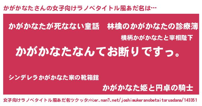 | 男性向けラノベタイトル風あだ名 | 『魔法科高校のかがかなた』 |