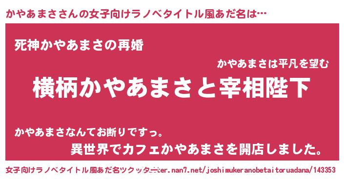 | 男性向けラノベタイトル風あだ名 | 『かやあまさに滅ぼされるだけの簡単なお仕事です』 |