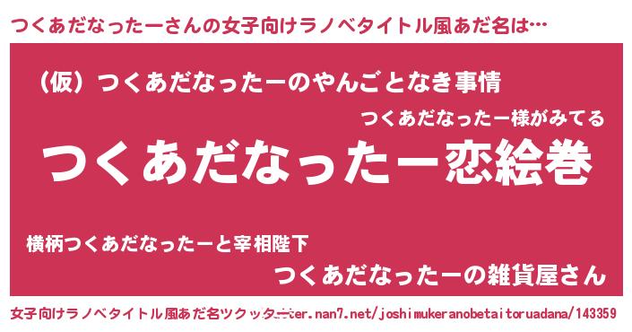 | 肩書あだ名 | 『つくあだなったー教授』 |