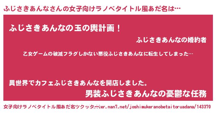 | 男性向けラノベタイトル風あだ名 | 『魔弾の王とふじさきあんな』 |