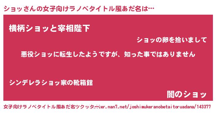 | 胡散臭い通販商品みたいなあだ名 | 『あなたにだけ特別に提供する限定10本のレアな日本酒…その名も「ショッ」』 |