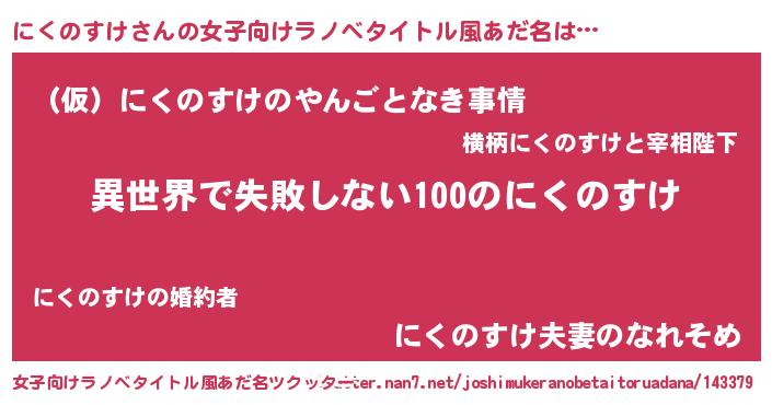 | 男性向けラノベタイトル風あだ名 | 『にくのすけという概念が存在しない退屈な世界 』 |