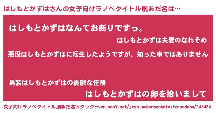| 胡散臭い通販商品みたいなあだ名 | 『あなたにだけ特別に提供する限定10本のレアな日本酒…その名も「はしもとかずは」』 |