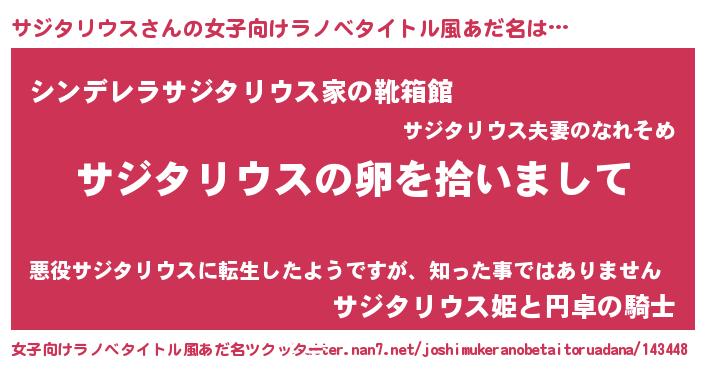 | 男性向けラノベタイトル風あだ名 | 『ダンジョンにサジタリウスを求めるのは間違っているだろうか』 |