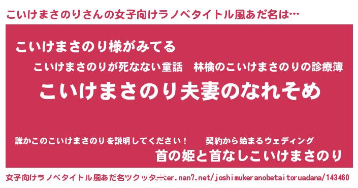 | 男性向けラノベタイトル風あだ名 | 『おまえをオタクにしてやるから、俺をこいけまさのりにしてくれ! 』 |