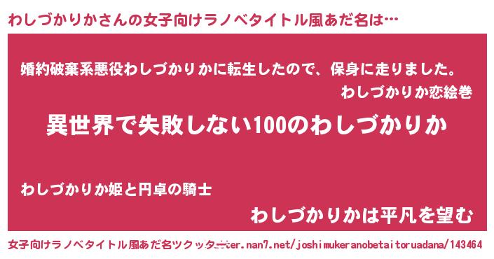 | 意味不明あだ名 | 『永久保存わしづかりか』 |