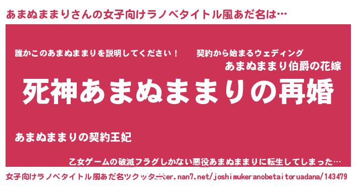 | 男性向けラノベタイトル風あだ名 | 『ノーゲーム・ノーアマヌママリ』 |