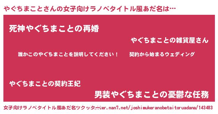 | 男性向けラノベタイトル風あだ名 | 『ヤグチマコトアートオンライン』 |
