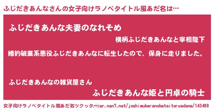 | 男性向けラノベタイトル風あだ名 | 『フジダキアンナスレイヤー』 |
