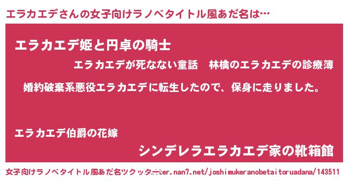 | 胡散臭い通販商品みたいなあだ名 | 『モテモテ間違いなし水晶球…その名も「エラカエデ」』 |
