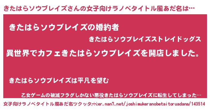 | 男性向けラノベタイトル風あだ名 | 『誰もが恐れるあのきたはらソウブレイズが、ぼくの専属メイドになるようです。』 |